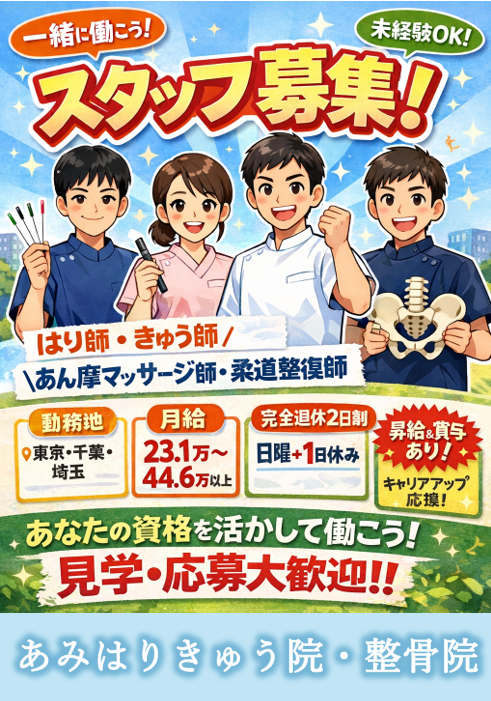 私たち「あみはりきゅう整骨院グループ」では、地域の皆様の身体の不調をなくすため地域医療を行っています。