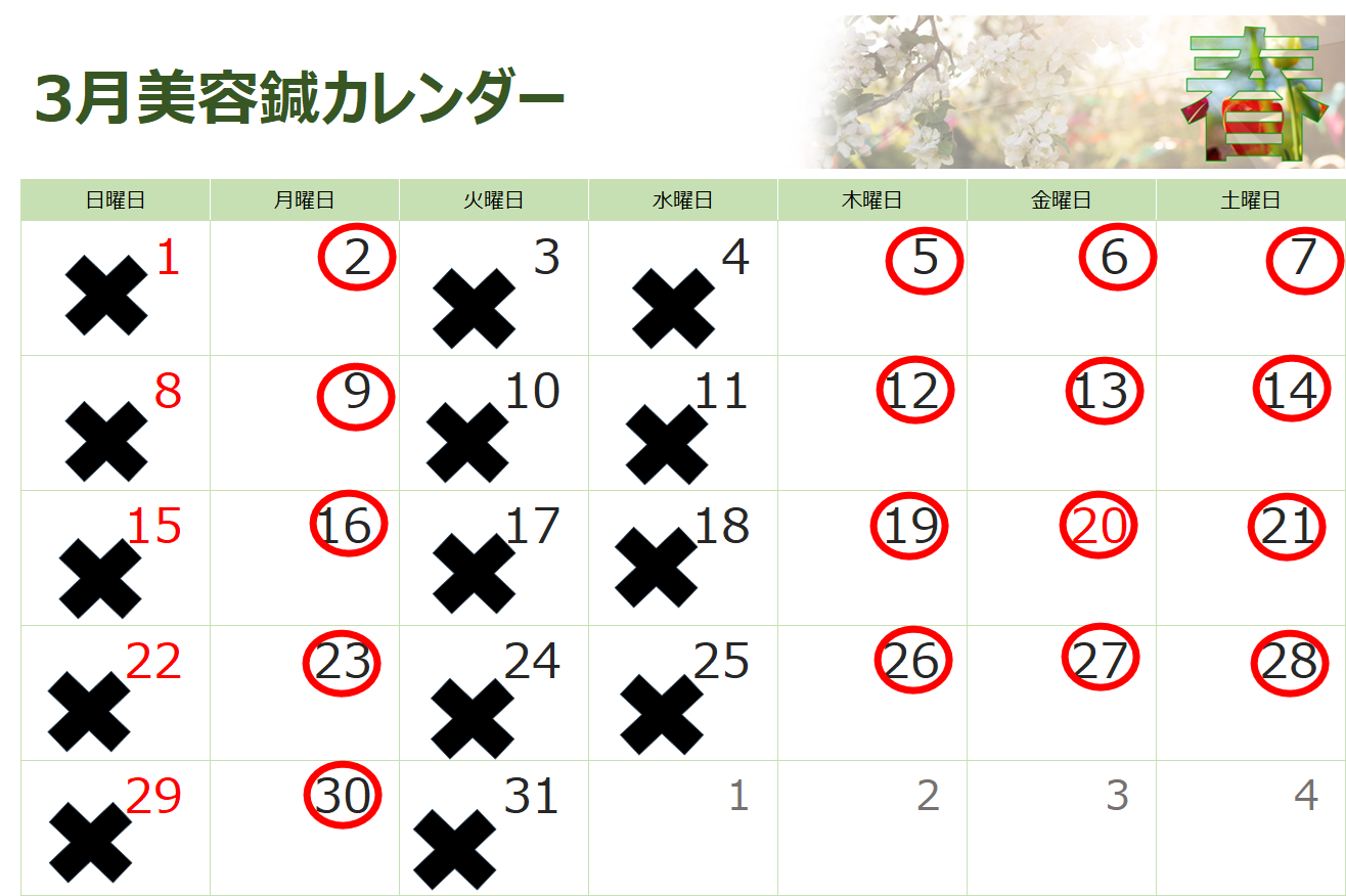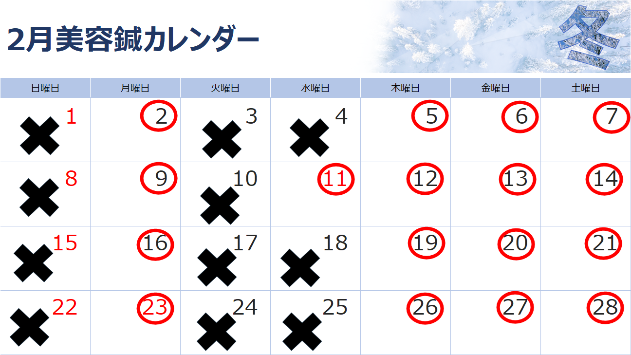 完全予約制となり、美容鍼出来ない日もありますのでご了承ください。