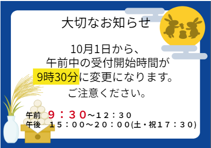 体のこわばり感やしびれが出てくる季節でもありますので、なんでもお気軽にご相談ください。