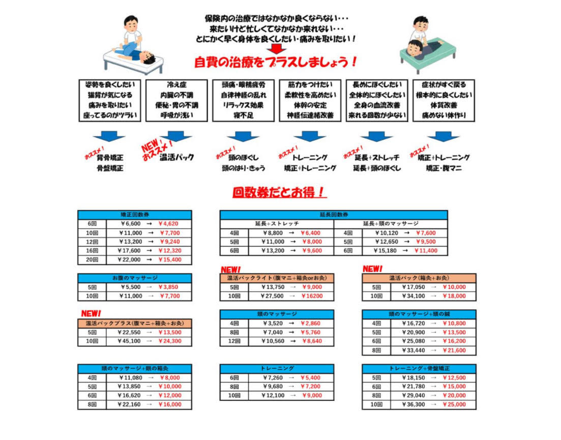 当院では他にも様々な症状に対してお得な治療券を販売しています。