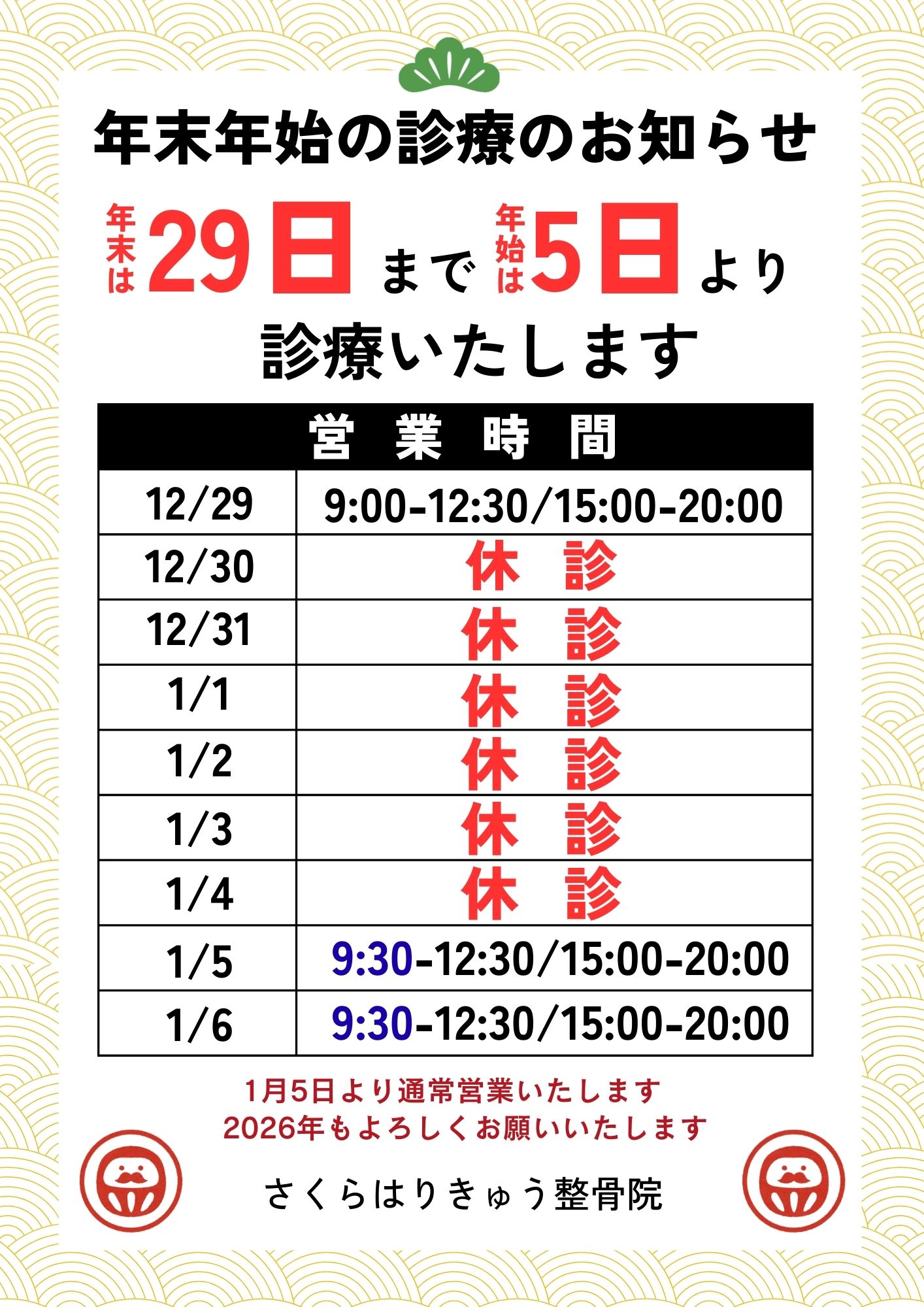 今年の痛みは今年のうちに!お気軽にお声かけください。