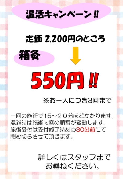 当院の温活は専用の箱を用いた間接灸という方法でお灸を行います。