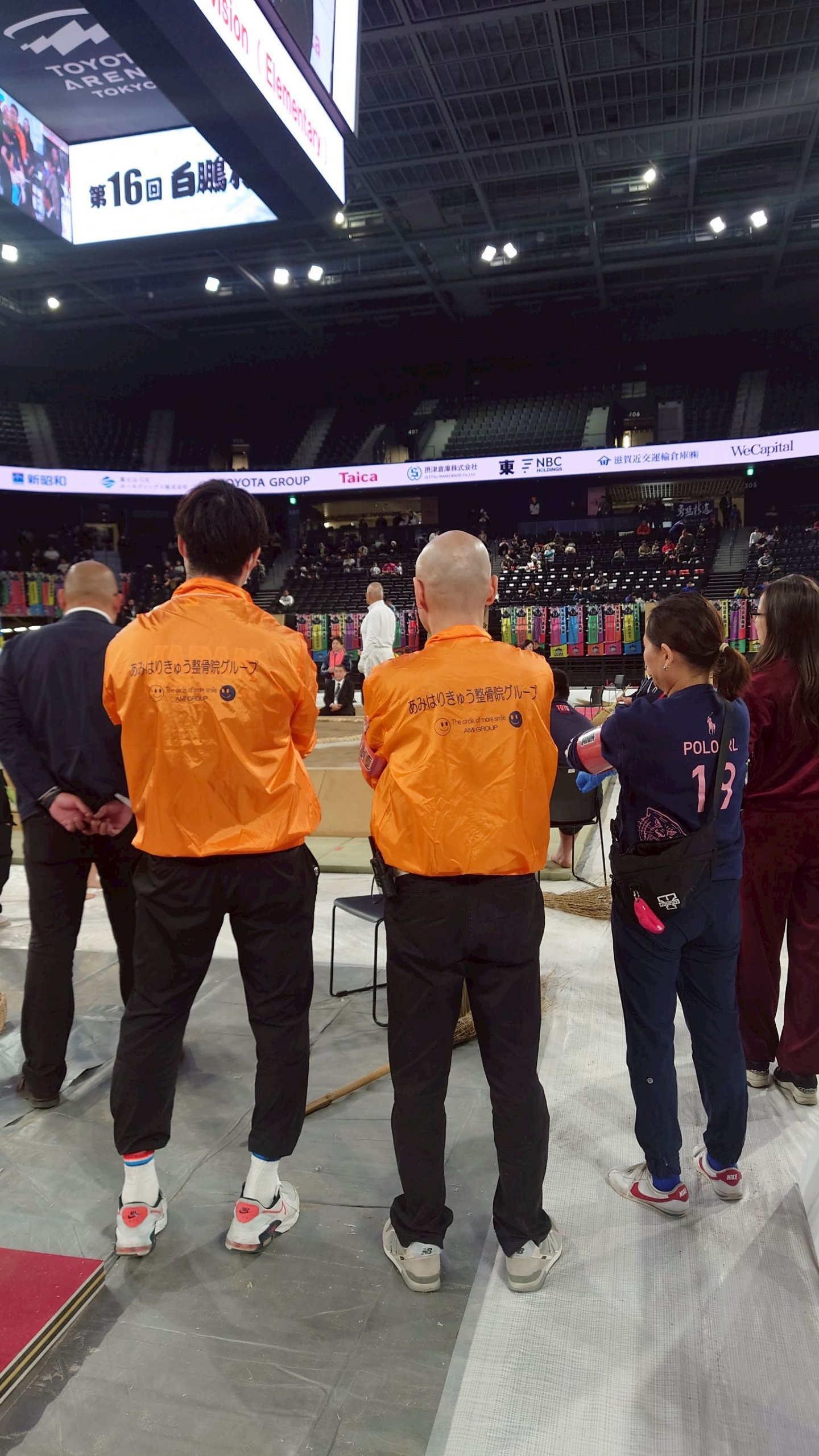 本日は、午前に小学1年生から6年生までの女子、そして中学生女子の個人戦が学年別・階級別で行われています。学年ごとに細かく階級が分かれており、体格差に配慮された中で真剣勝負が繰り広げられています。午後からは、高校生・大学生・社会人の選抜選手による男女の個人戦が予定されており、軽量級から重量級まで4階級に分かれて、より迫力のある取り組みが続きます。会場全体が緊張感と熱気に包まれる中、私たち救護スタッフは、選手が安心して力を発揮できるようケガの早期対応やコンディションの確認を行っています。特に成長期の選手が多いため、小さな異変も見逃さないよう細心の注意を払いながら現場に立ち続けています。2日目も安全第一で大会を支えてまいります。
