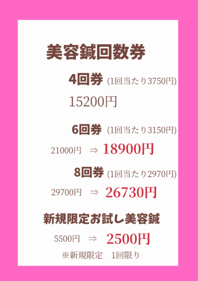また美容鍼回数券の販売中です。