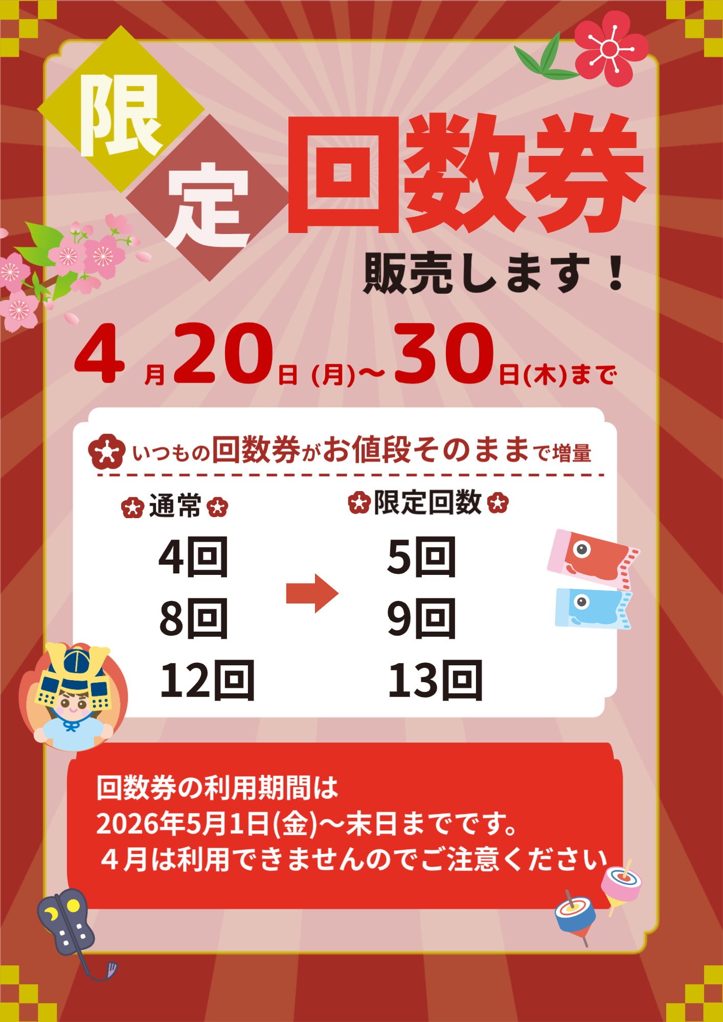 4月20日から期間限定の回数券を販売いたします!