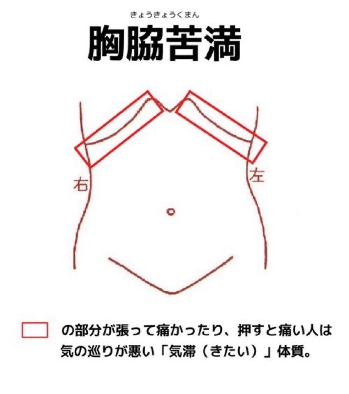 胸や脇の張り、喉のつまり感、げっぷやオナラが多いのも